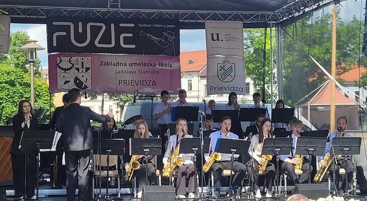 Vo štvrtok 29. mája si mohli priaznivci dobrej hudby vypočuť na Námestí slobody v Prievidzi v rámci festivalu FÚZIE 2025 skvelé výkony piatich bigbandov z celého Slovenska. Predstavili sa súbory NITRADITIONAL band z Nitry, HOT SIX zo ZUŠ Ivanka pri Dunaji, Big Band STORM zo ZUŠ Šaštín-Stráže a Swingless Jazz Ensemble Junior zo SZUŠ H. Madariovej v Nitre.