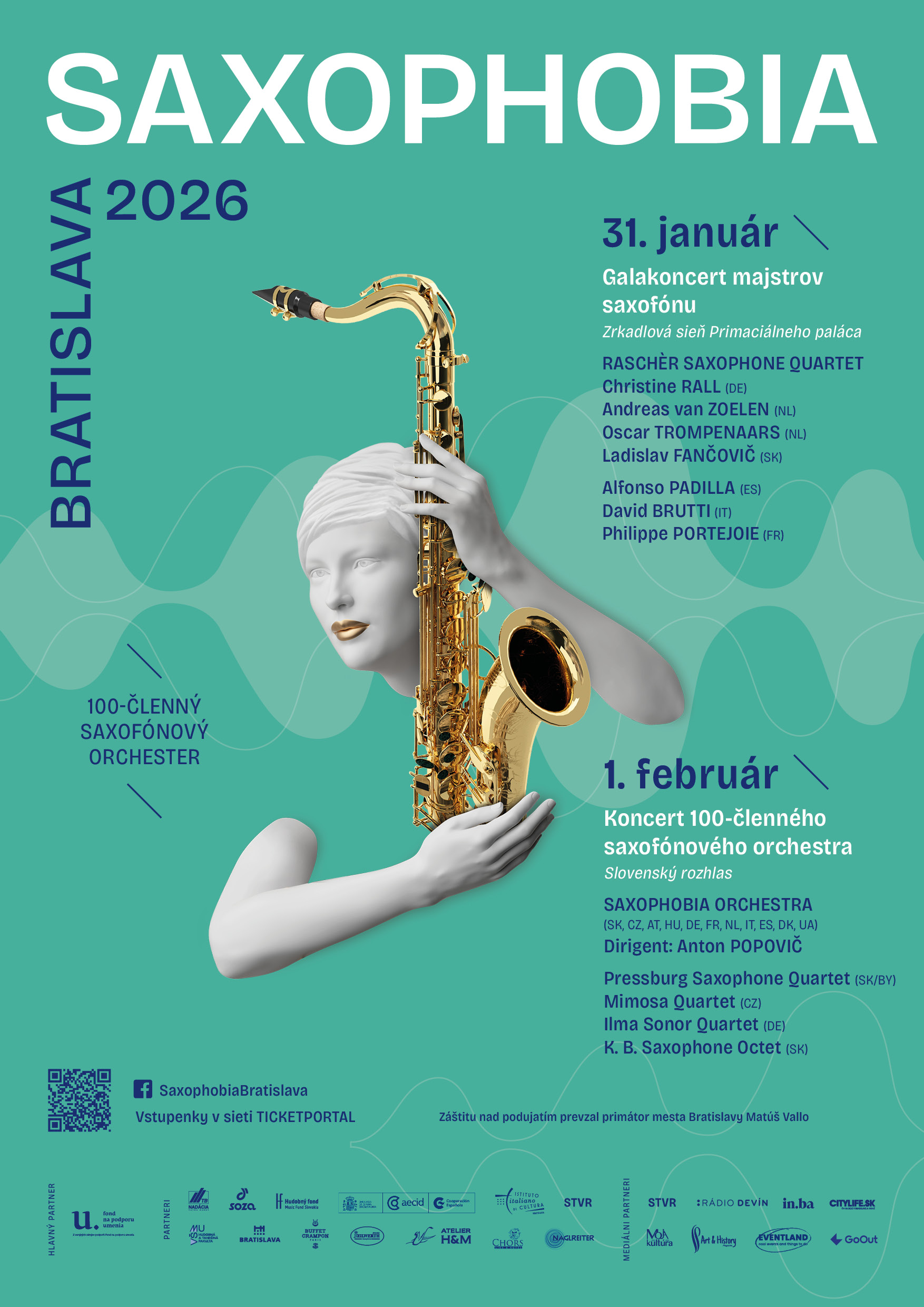 Orchester zložený z vyše 100 saxofonistov z 11 krajín – účastníkov a lektorov medzinárodných saxofónových majstrovských kurzov Saxophobia Bratislava 2026 – predstaví takmer všetky druhy saxofónov od sopránového, cez altový, tenorový, barytónový, basový až po raritný kontrabasový saxofón. Pod taktovkou Antona Popoviča zaznejú skladby J. S. Bacha, B. Bartóka a D. Milhauda. Program doplnia komorné zoskupenia z rôznych krajín a vo svetovej premiére odznie kompozícia Ivana Danka Collapse Quartet v podaní Pressburg Saxophone Quartet.