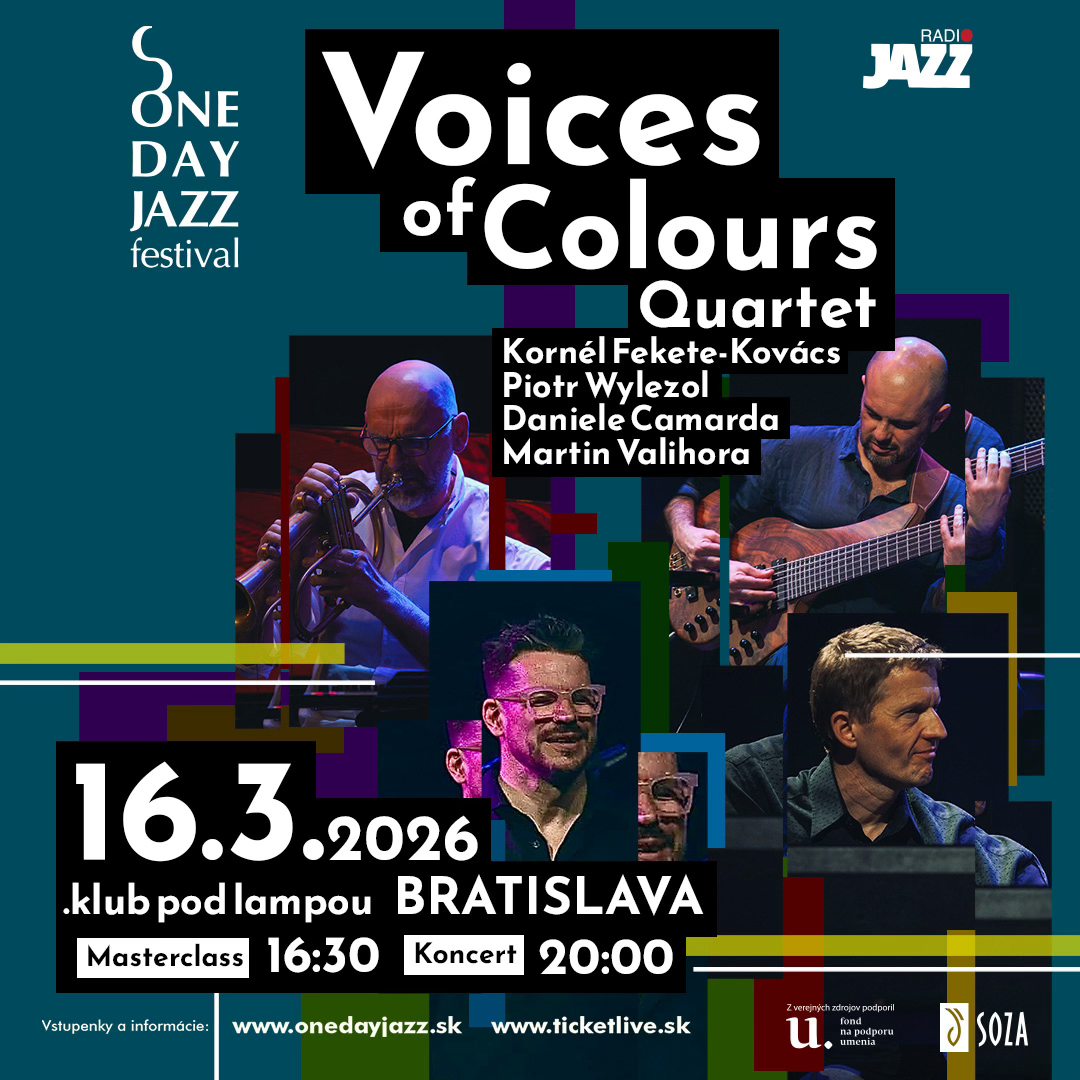 Podujatie prebehne v rámci One Day Jazz Festivalu, ktorý v novembri 2024 ponúkol vo viacerých slovenských mestách sériu koncertov Voice of Colours. Členom zoskupenia boli vtedy popri slovenskom bubeníkovi aj rešpektovaný americký klavirista James Francies, taliansky basgitarista Daniele Camarda a slovenský gitarista Michal Bugala. Na bratislavskom koncerte budú členmi Voice of Colours maďarský trubkár a bandlíder Kornél Fekete-Kovács, vynikajúci poľský klavirista Piotr Wyleżoł, taliansky basgitarista Daniele Camarda a samozrejme bubeník Martin Valihora. Príďte zažiť výnimočné stretnutie štyroch výrazných osobností európskeho jazzu – večer plný energie, improvizácie a hudobných farieb. Viac info a vstupenky nájdete na tomto odkaze.