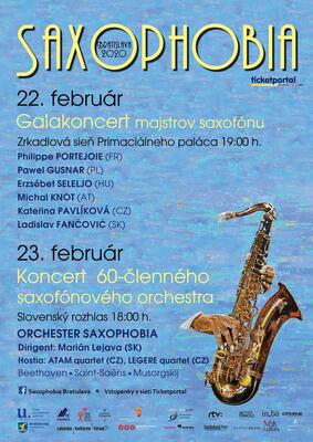 Saxophobia Galakoncert sa uskutoční 22. februára v Zrkadlovej sieni Primaciálneho paláca a predstavia sa na ňom všetci zahraniční lektori, ktorí sú špičkoví renomovaní saxofonisti na poli vážnej hudby. Program koncertu budú tvoriť diela skladateľov ako C. Saint-Saëns, L. van Beethoven, I. Gotkovsky, R. Kamplet či Peter Breiner, ktorý napísal štyri krátke skladby pre saxofónové kvarteto a klavír na motívy piesní Michaela Jacksona a na koncerte odznejú v svetovej premiére.