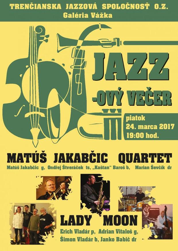 Je dobre, že vychádzajú z iniciatívy lokálnych umelcov, ale úroveň koncertov presahuje domáci diapazón a v kluboch hrajú umelci zvučných mien. Ich kumšt sa šíri prostredníctvom médií, ale oni sami sú ochotní cestovať, hrať v kluboch a poskytovať zážitky. Mesto, ako Trenčín je terčom záujmu najlepších džezových interpretov, čoho dôkazom je aj piatkový koncert v Galérii Vážka, na Mierovom námestí v Trenčíne. Matúš Jakabčic – sám skvelý gitarista, skladateľ, aranžér, privedie výnimočný kvartet. Ondřej Štveráček je špičkový saxofonista európskeho formátu, Marián Ševčík hrá na bicie nástroje, koncertuje a nahráva so svetovými osobnosťami džezu, Tomáš „Kaštan“ Baroš patrí medzi najžiadanejších kontrabasistov, ak sa jedná o koncerty alebo nahrávacie štúdio. Stretávajú sa spolu aj v SK-CZ big bande, ktorý vedie Matúš Jakabčic a ktorého názov vystihuje aj zloženie slovensko-českého kvarteta. Jeho repertoár pochádza najmä zo skladieb členov kvarteta. Skladby Ondřeja Štveráčka, Matúša Jakabčica a Tomáša Baroša sú súčasťou úspešných albumov ich vlastnej produkcie, alebo nahrávok, na ktorých sa svojim kumštom ako hostia úspešne podieľajú. Atmosféru Galérie Vážka nahreje na správnu „džezovú“ teplotu trenčianska formácia Lady Moon. Ktorú môžeme označiť ako trojgeneračnú. Vznikla z iniciatívy dlhoročného člena kapely Aurélius Q, klaviristu Ericha Vladára. Jeho syn dorástol umelecky i výškovo (výškovo vlastne prerástol...) do úrovne rovnocenného aktéra na pódiu. Adrian Vitaloš je štýlový gitarista v období rýchleho umeleckého rastu. Janko Babič nemá vôbec žiadny dôvod zavesiť paličky na klinec. Je stále aktívny v bratislavských kapelách a spolupráca s trenčianskymi džezmenmi je mu prirodzená. V piatok, 24. marca o 19. hodine sa zíde v Galérii Vážka osem kvalitných hudobníkov v dvoch kvartetoch, ktoré zaručujú skvelý hudobný zážitok. Matúš Jakabčic Quartet je na jarnom turné a hrá džez zodpovedajúci najvyšším svetovým parametrom. Lady Moon je trenčianska formácia, ktorá rozširuje džezový odkaz cez pôsobenie domácich hudobníkov, postavené na štvrťstoročnej tradícii džezu v Trenčíne. Dvadsaťpäť rokov džezových aktivít dali mestu patinu kvalitnej kultúry a dobré meno v umeleckých kruhoch. Do mesta prichádza skupina špičkových osobností českého a slovenského džezu. Je treba brať túto kvalitu v úvahu a možno počítať s výdavkom o euro-dve vyšším. Predpredaj vstupeniek v Kultúrno informačnom centre Trenčín.