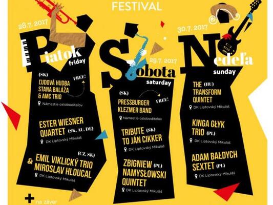 Tešíme sa na vás na 13. ročníku letného Mikulášskeho Jazzového Festivalu. Na veľkom pódiu na Námestí osloboditeľov a v Dome Kultúry Liptovský Mikuláš na vás počas troch večerov 28. – 30. júla 2017 čaká množstvo rozmanitých žánrov a špičkových hudobných výkonov v podaní 9 formácií z celého sveta. Okrem koncertov na vás čakajú každovečerné jam sessions, súťaže o jazzové albumy a tiež 2 hudobné workshopy.