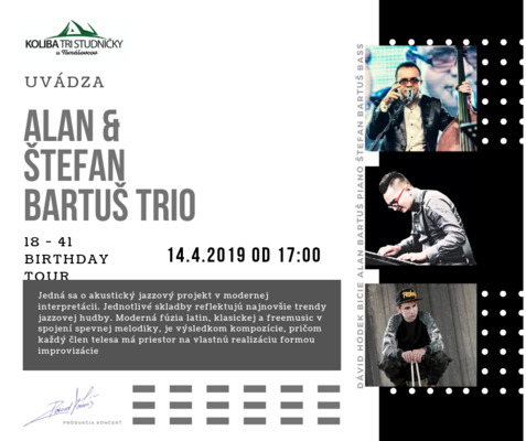 Zoskupenie Alan&Stefan Bartuš Trio Vzniklo na vnútorný podnet Bartušovcov-prezentovať a realizovať vlastné hudobné predstavy. Kompozícia je vyústením skúseností autorou v rôznych žánroch a druhoch hudby. Najmä vážna hudba, hudba etník a world music.Jedná sa o akustický jazzový projekt v modernej interpretácii. Jednotlivé skladby reflektujú najnovšie trendy jazzovej hudby. Moderná fúzia latin, klasickej a freemusic v spojení spevnej melodiky, je výsledkom kompozície, pričom každý člen telesa má priestor na vlastnú realizáciu formou improvizácie. Vznikajú rozličné farebné plochy v priestore, sú typické v hudobnom procese. Jednotlivé skladby obsahovo zachytávajú profesné skúsenosti autorov, ako aj ich silné emočné úseky života.