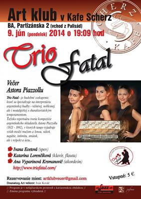 ART klub v kafe Scherz Trio Fatal- dámske hudobné zoskupenie, ktoré interpretuje vášnivú, noblesnú a temperamentnú argentínsku hudbu skladateľa Astora Piazzollu