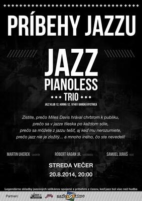 Projekt “PRÍBEHY JAZZU – Jazz Pianoless Trio” má za cieľ propagáciu jazzu a jeho krásy pre širokú verejnosť. Hra tria je dopĺňaná príbehmi o jazzových muzikantoch, histórii jazzu a jeho krásach, čím “odpovedá na mnohé otázky, ktoré môže laické publikum mať, ale bojí sa ich spýtať.”